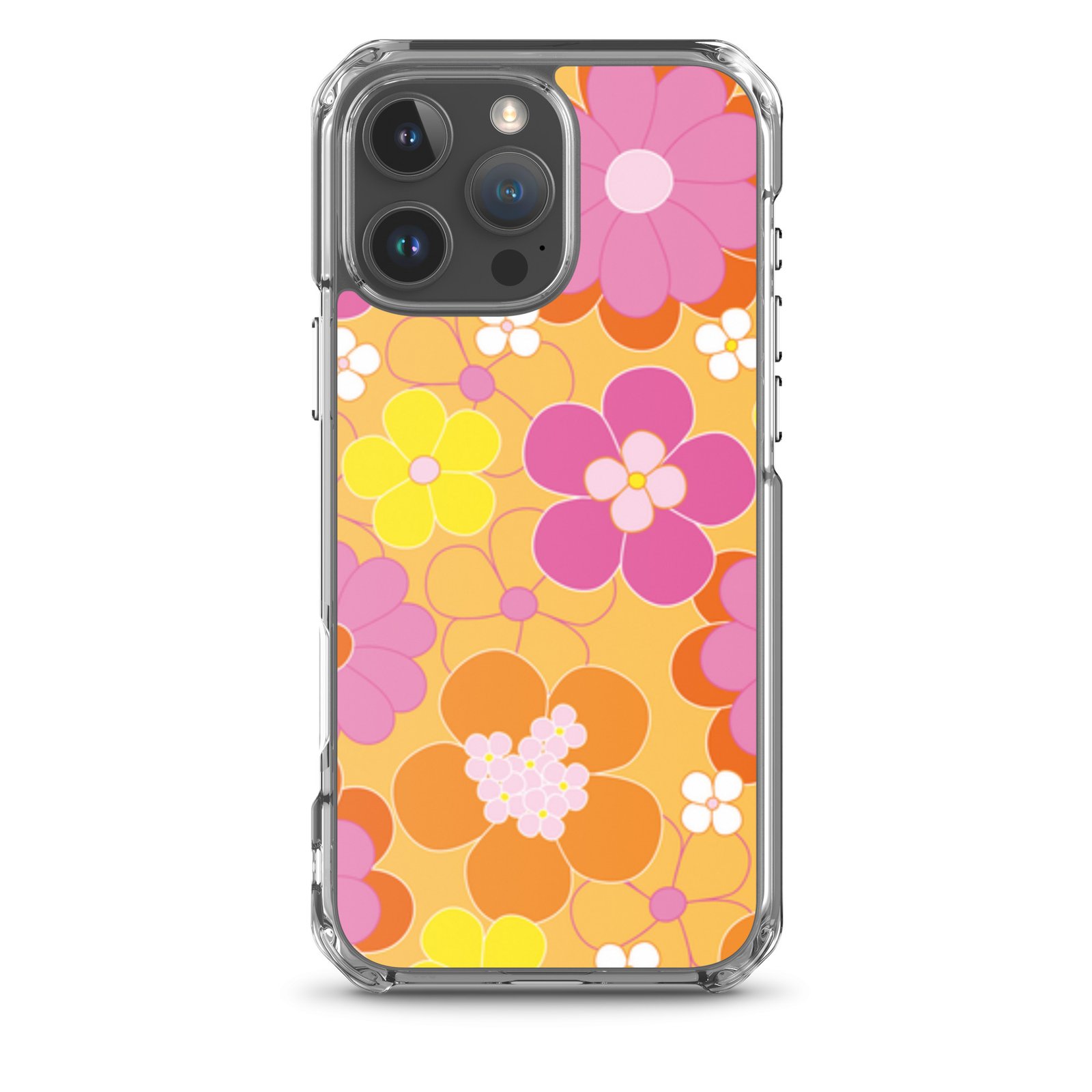 Pink/Yellow Flowers – Clear iPhone Case