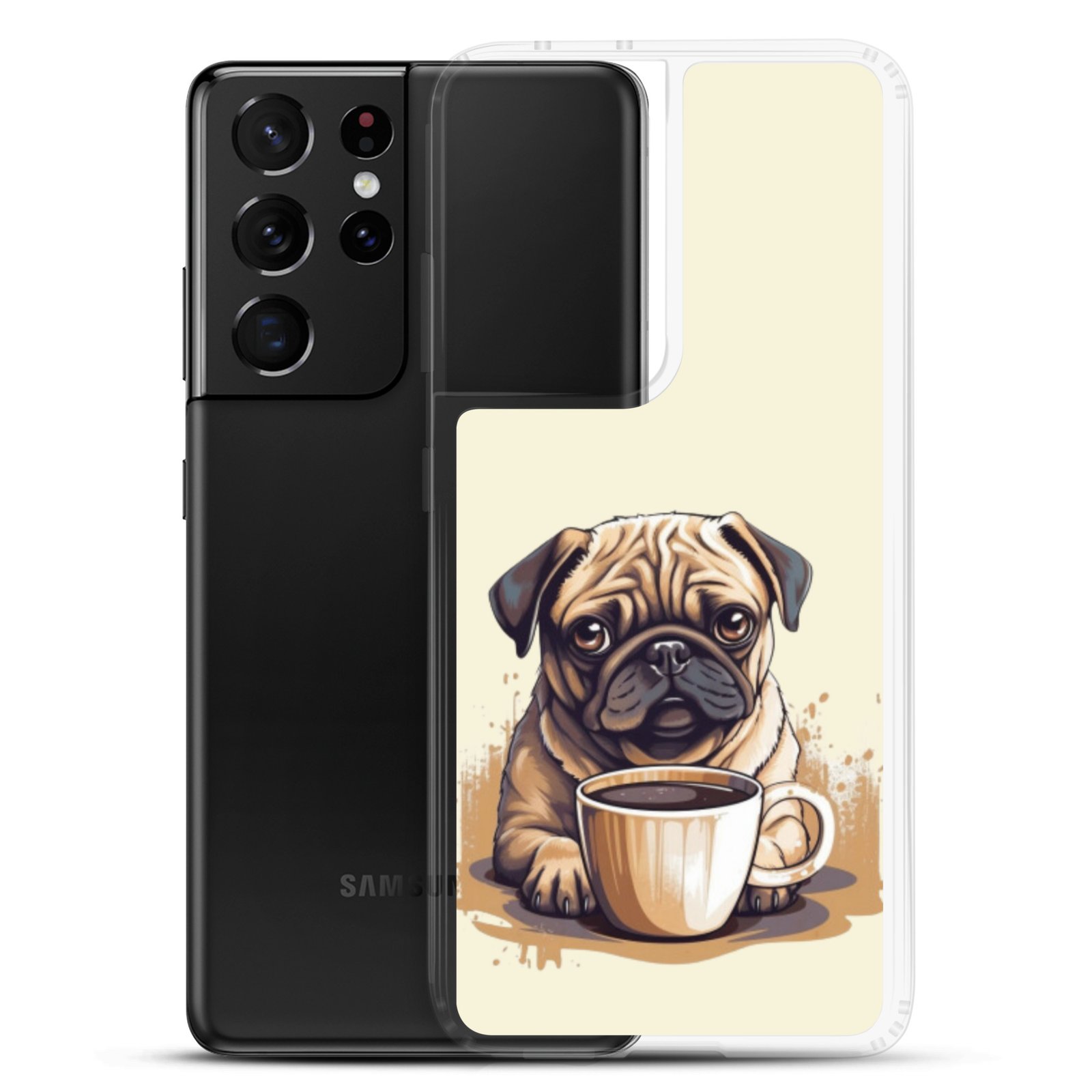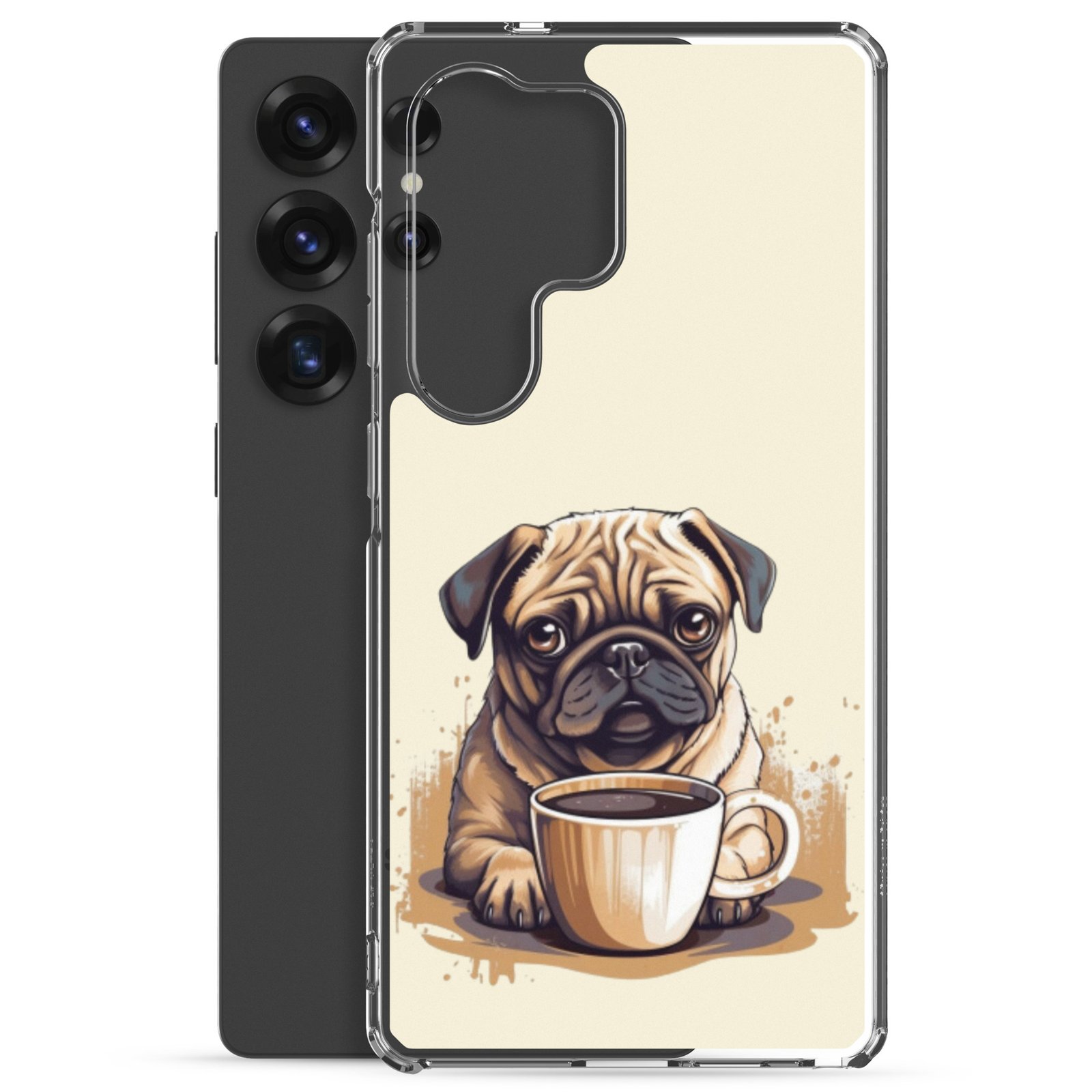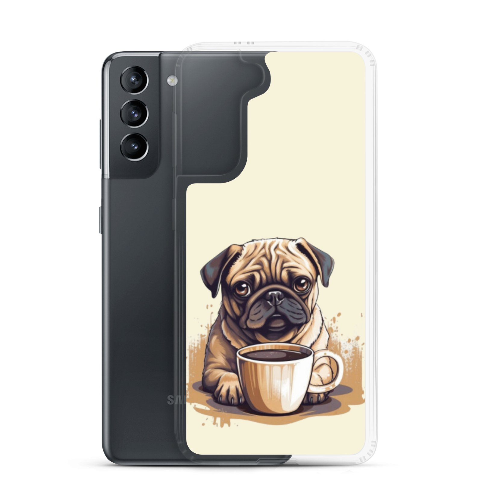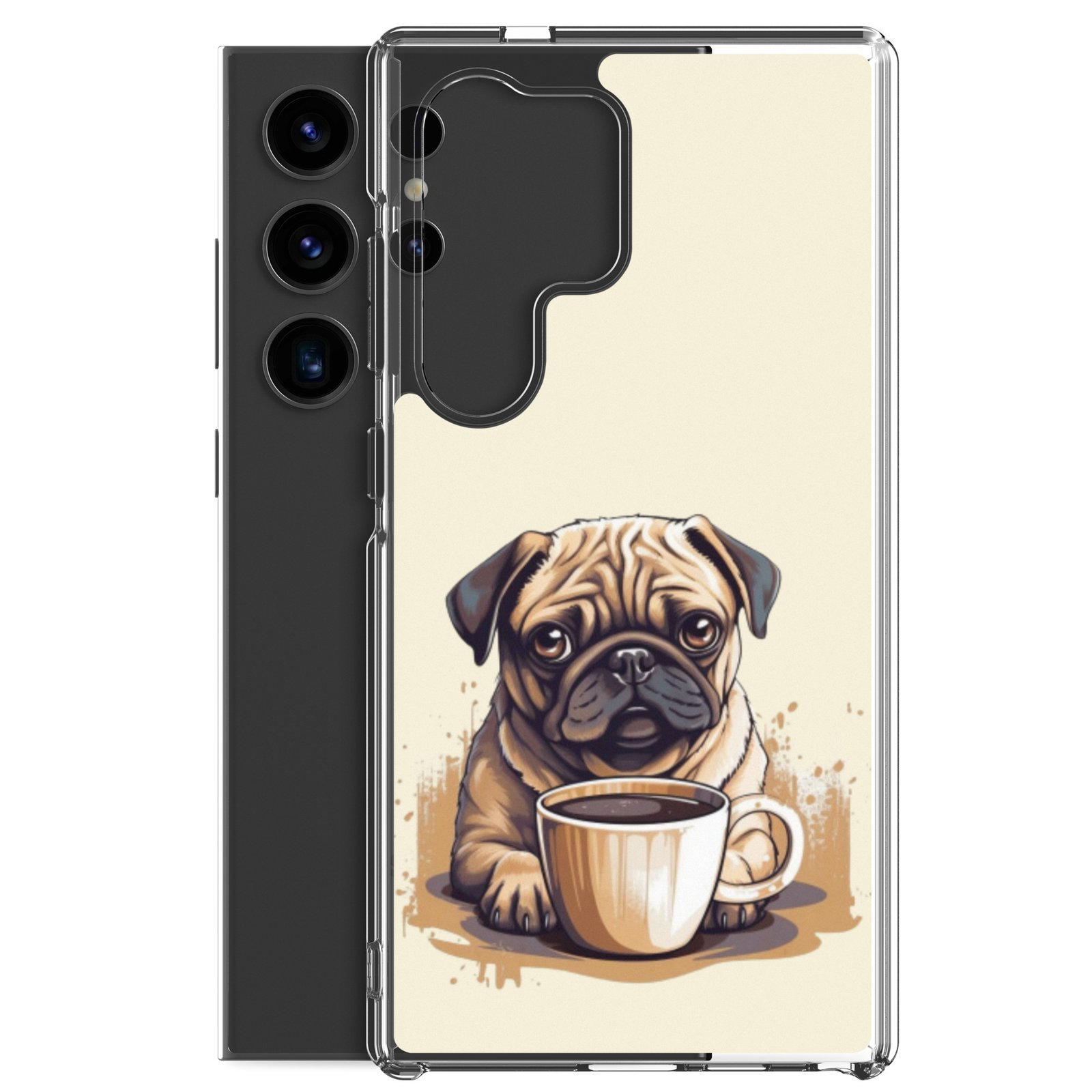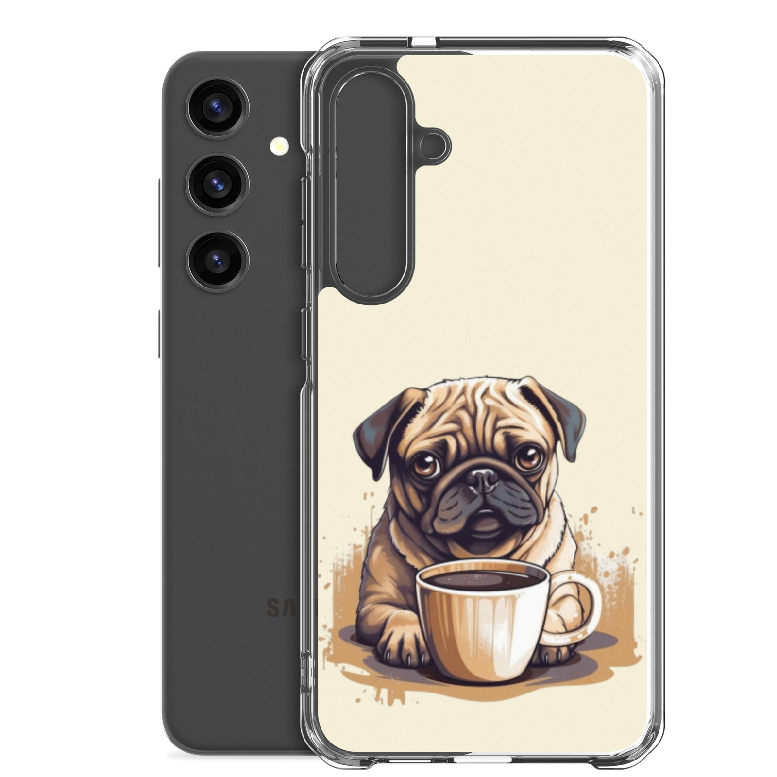 Pug Dog + Coffee – Clear Galaxy Case