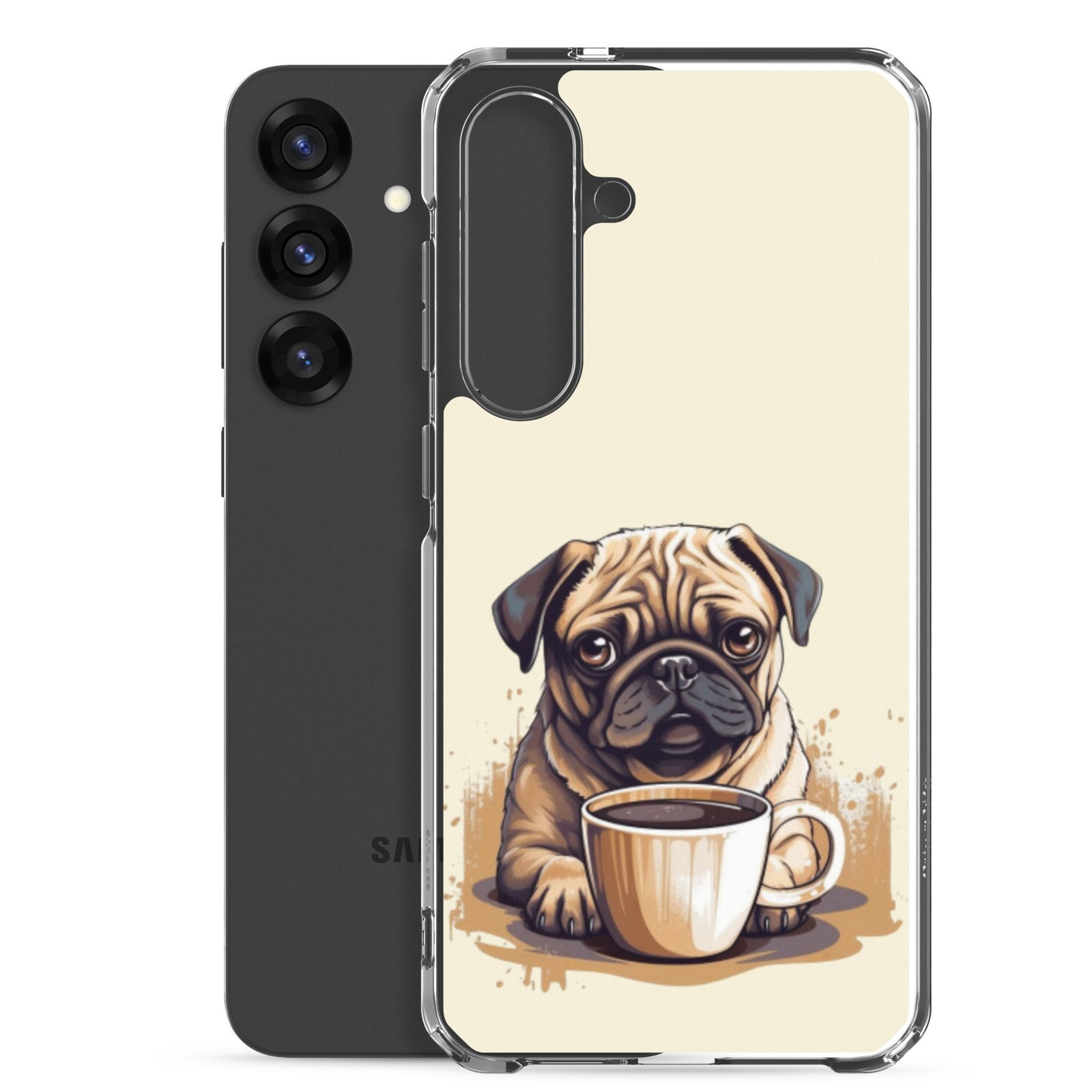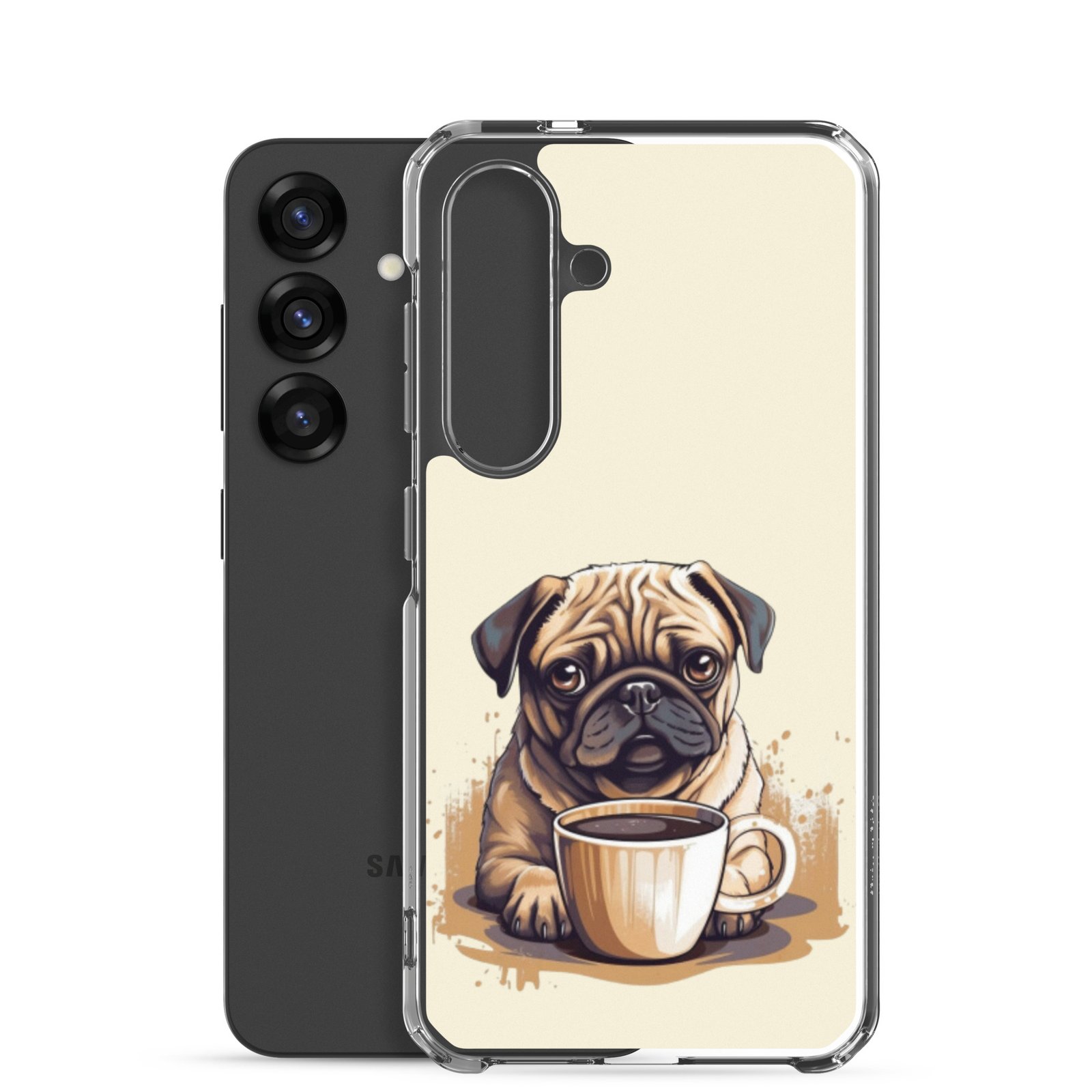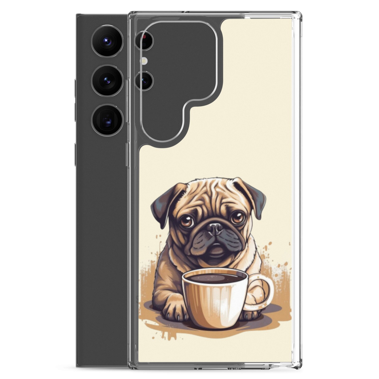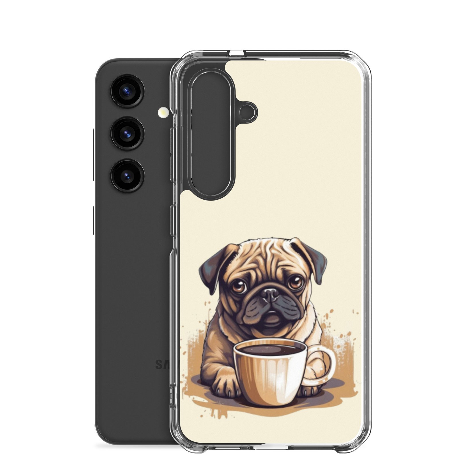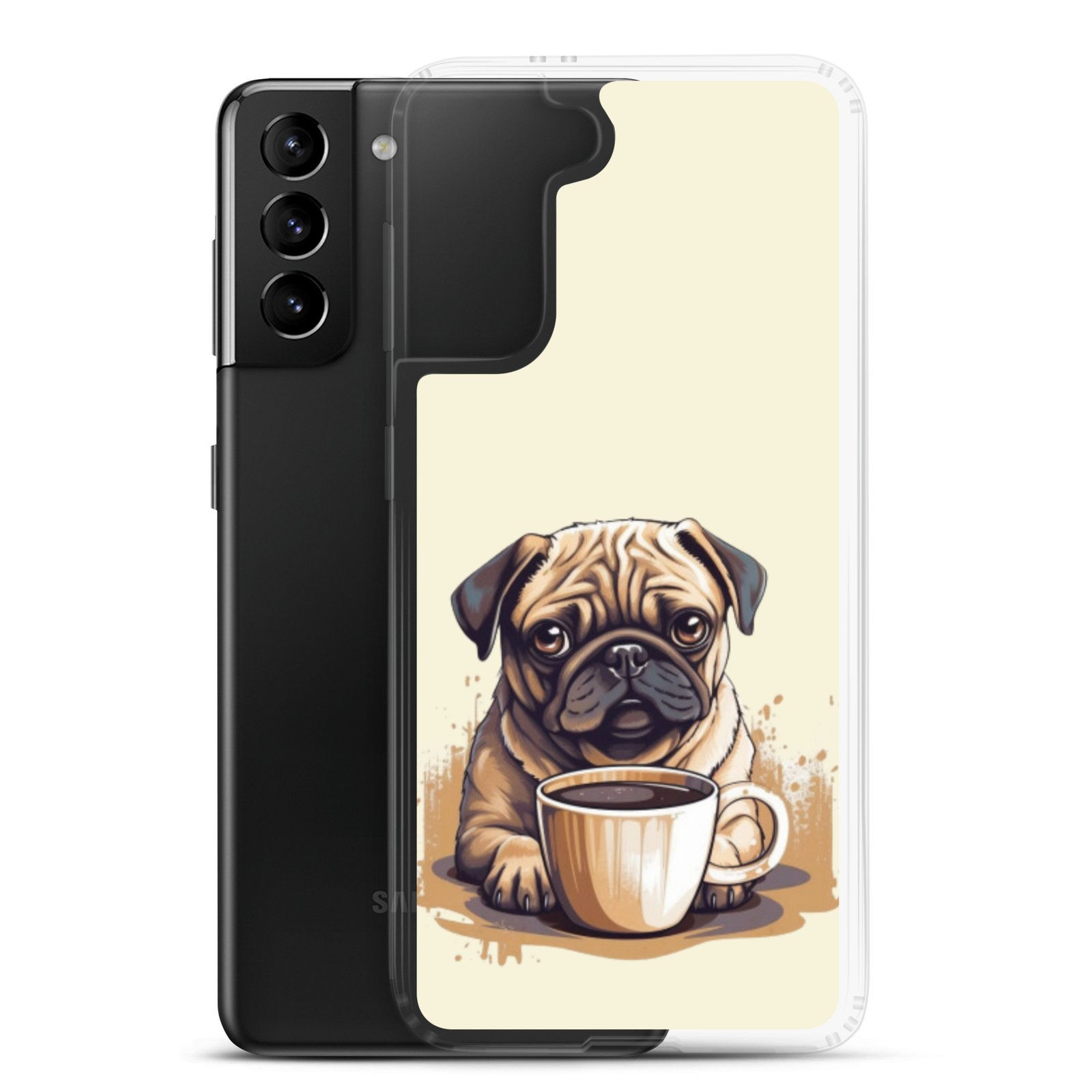 Pug Dog + Coffee – Clear Galaxy Case