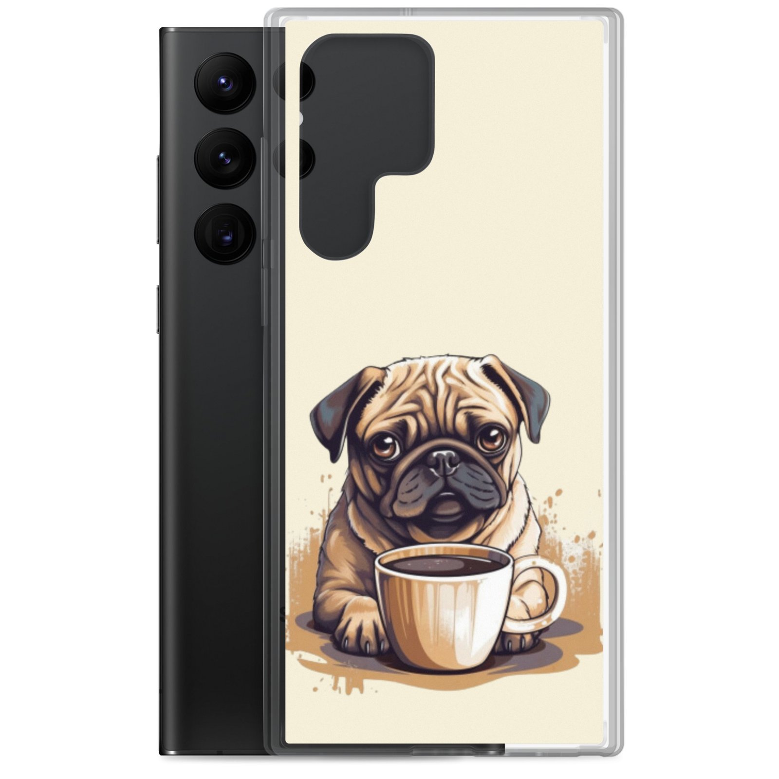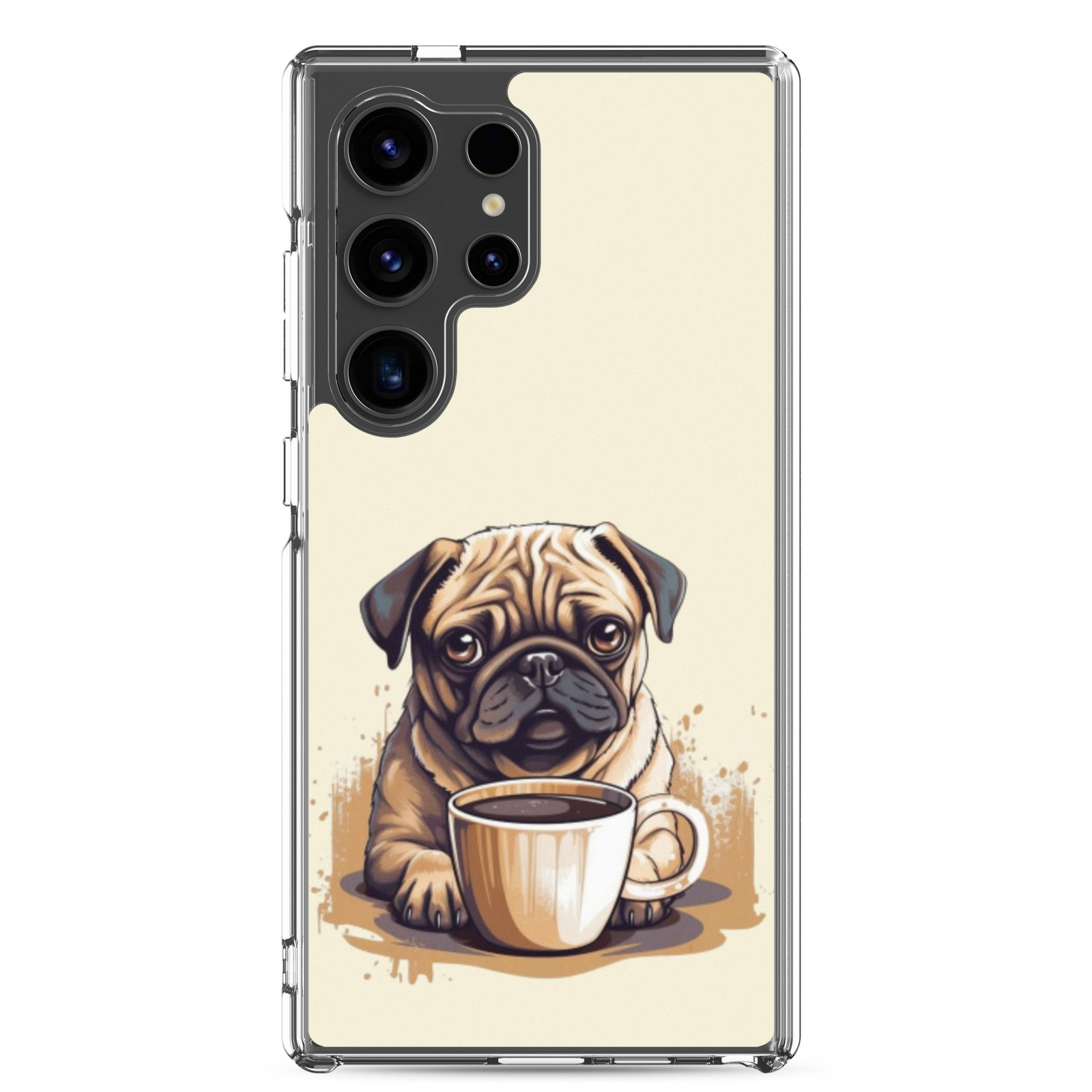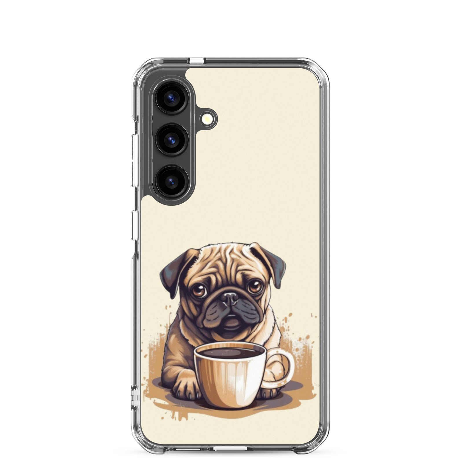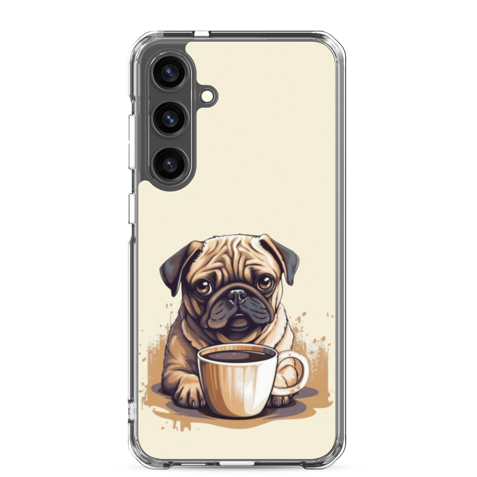 Pug Dog + Coffee – Clear Galaxy Case