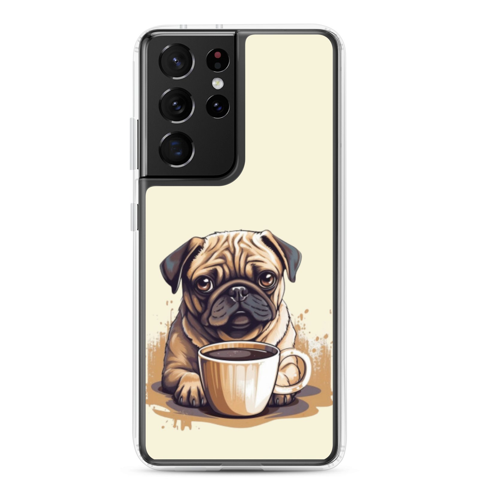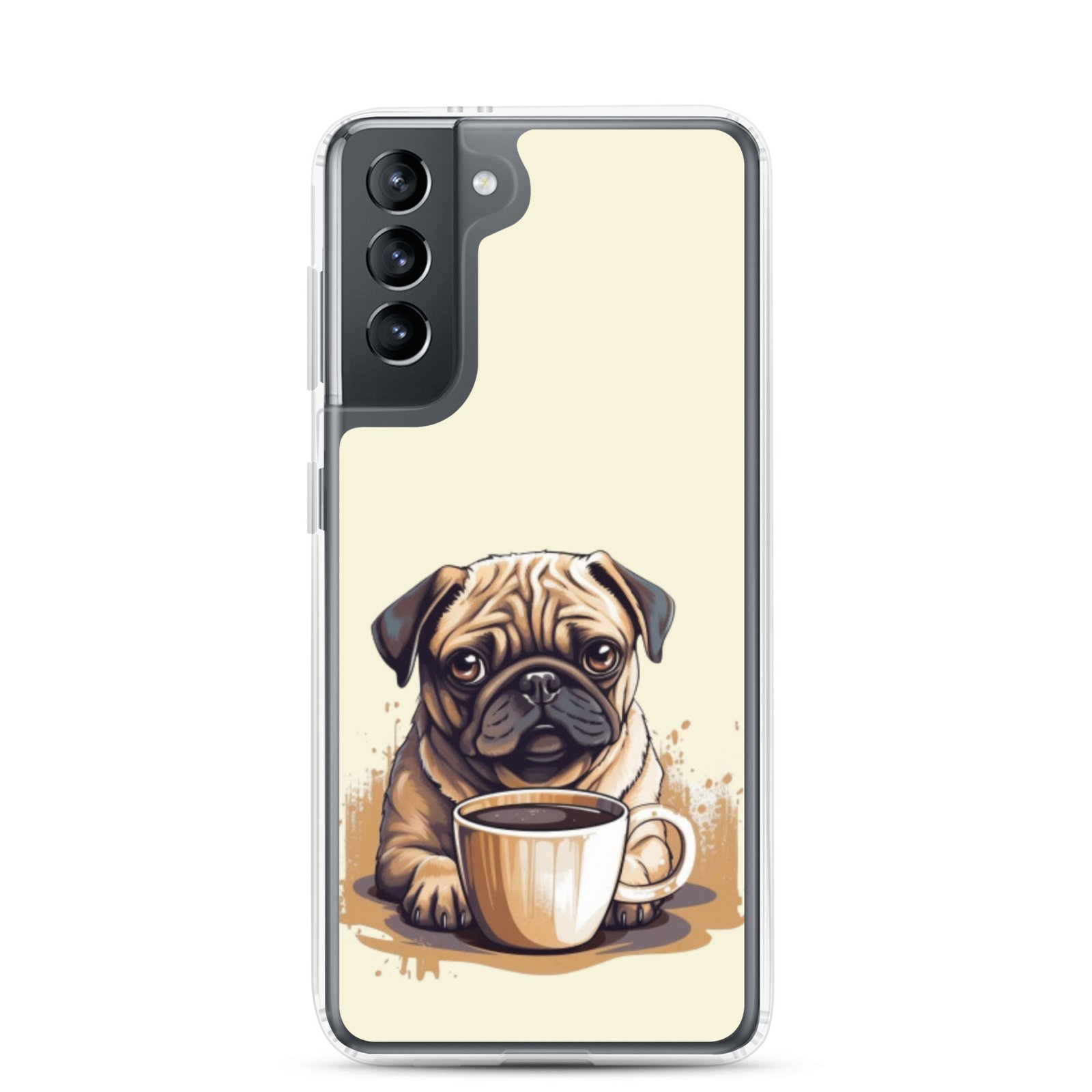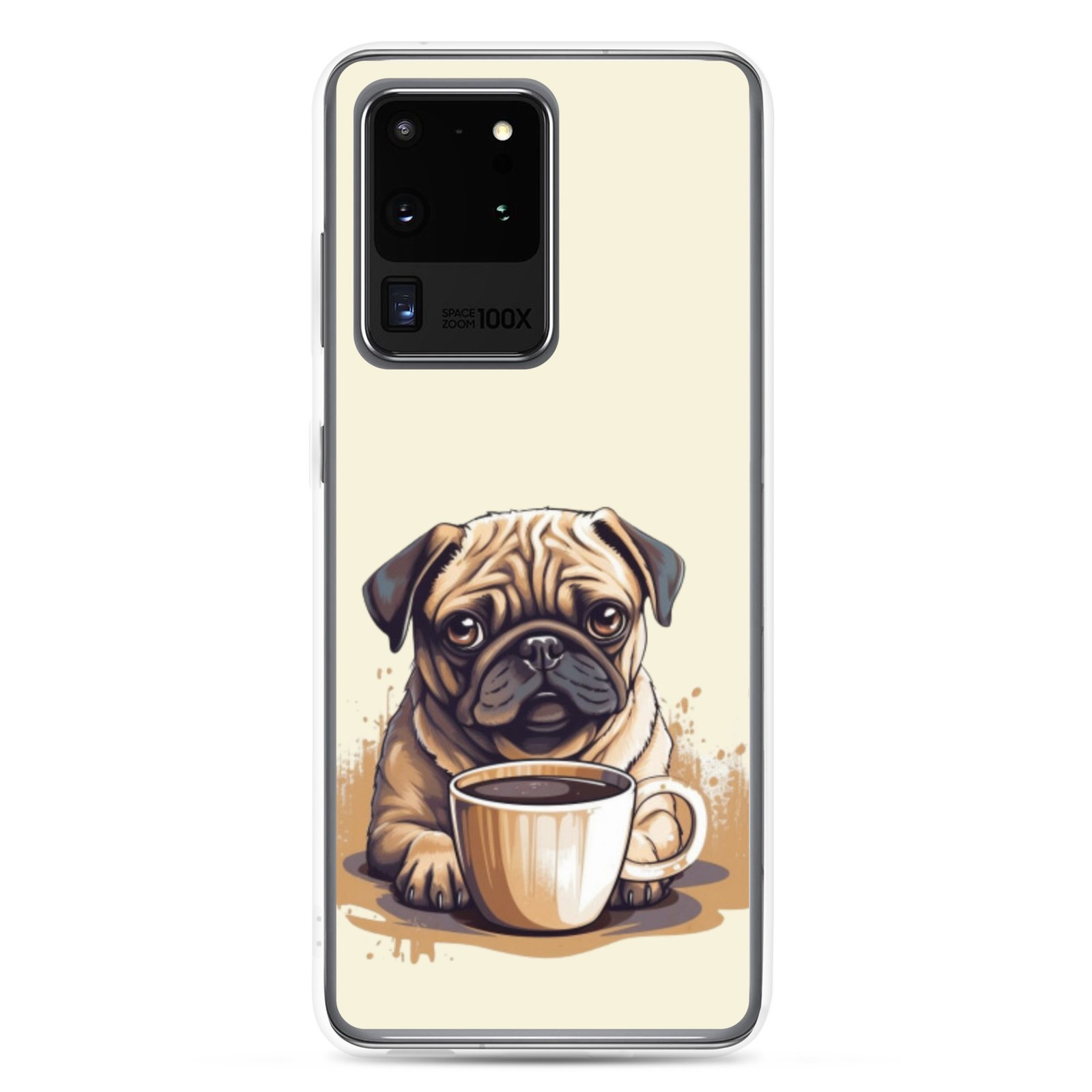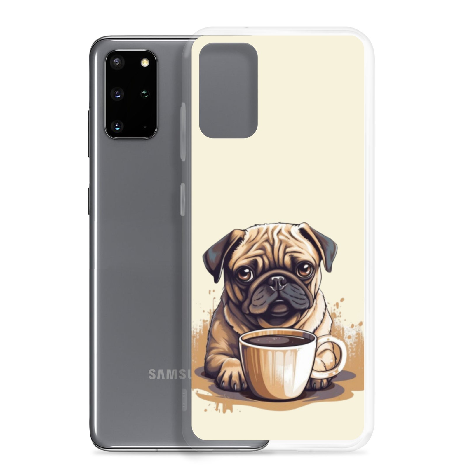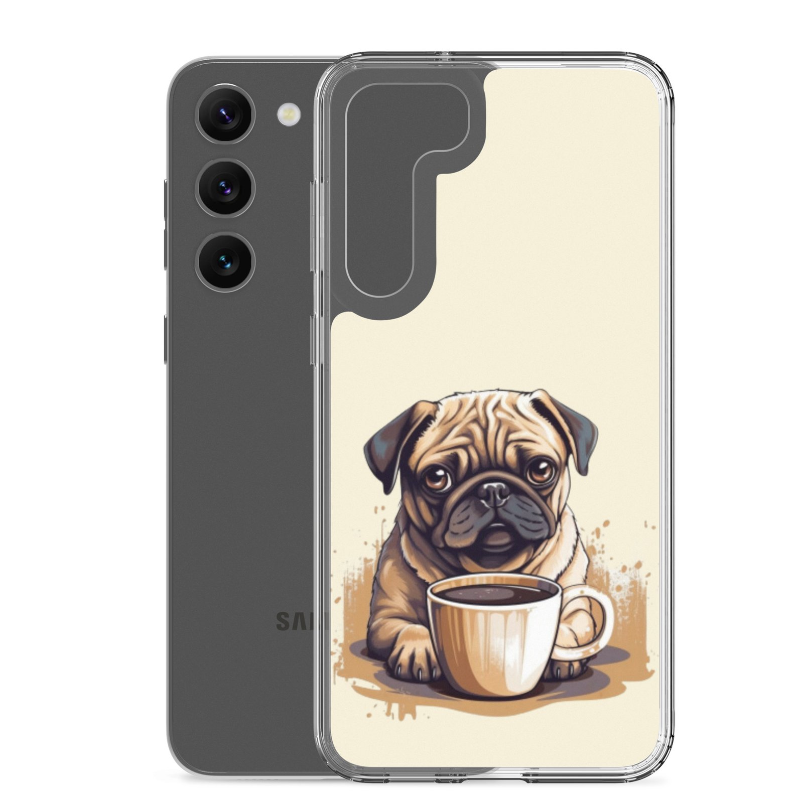 Pug Dog + Coffee – Clear Galaxy Case