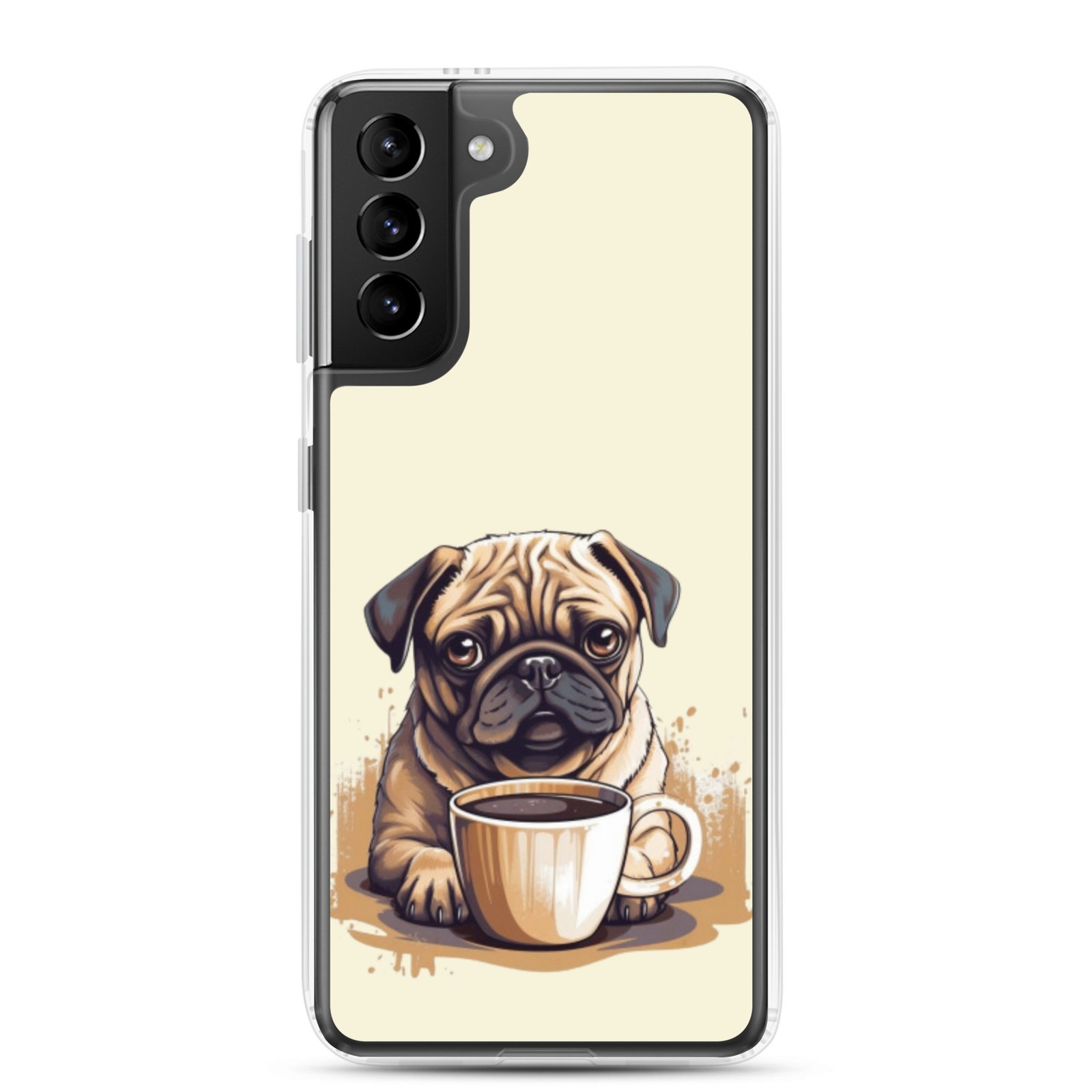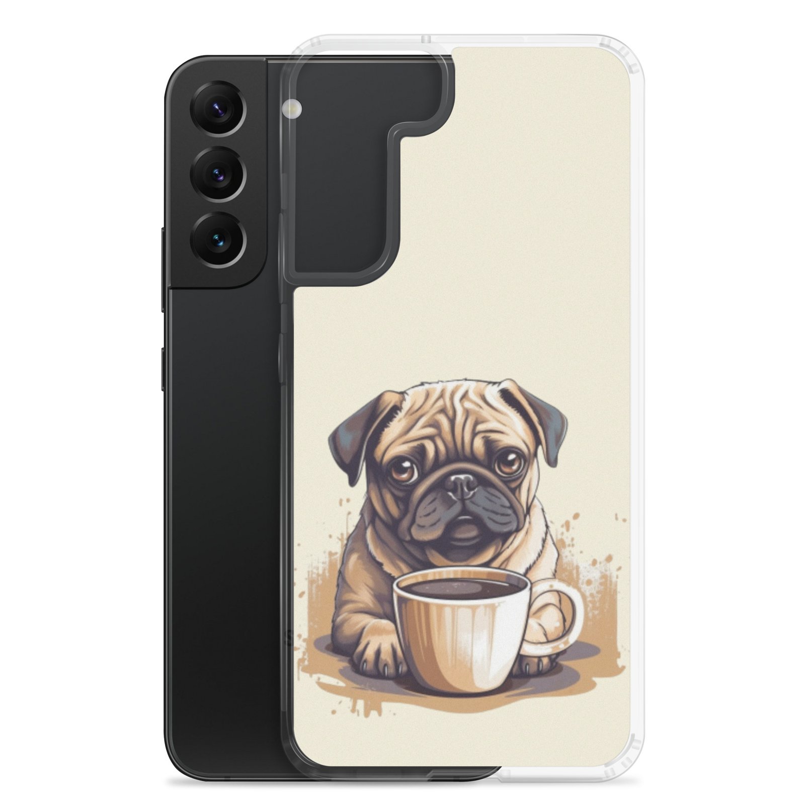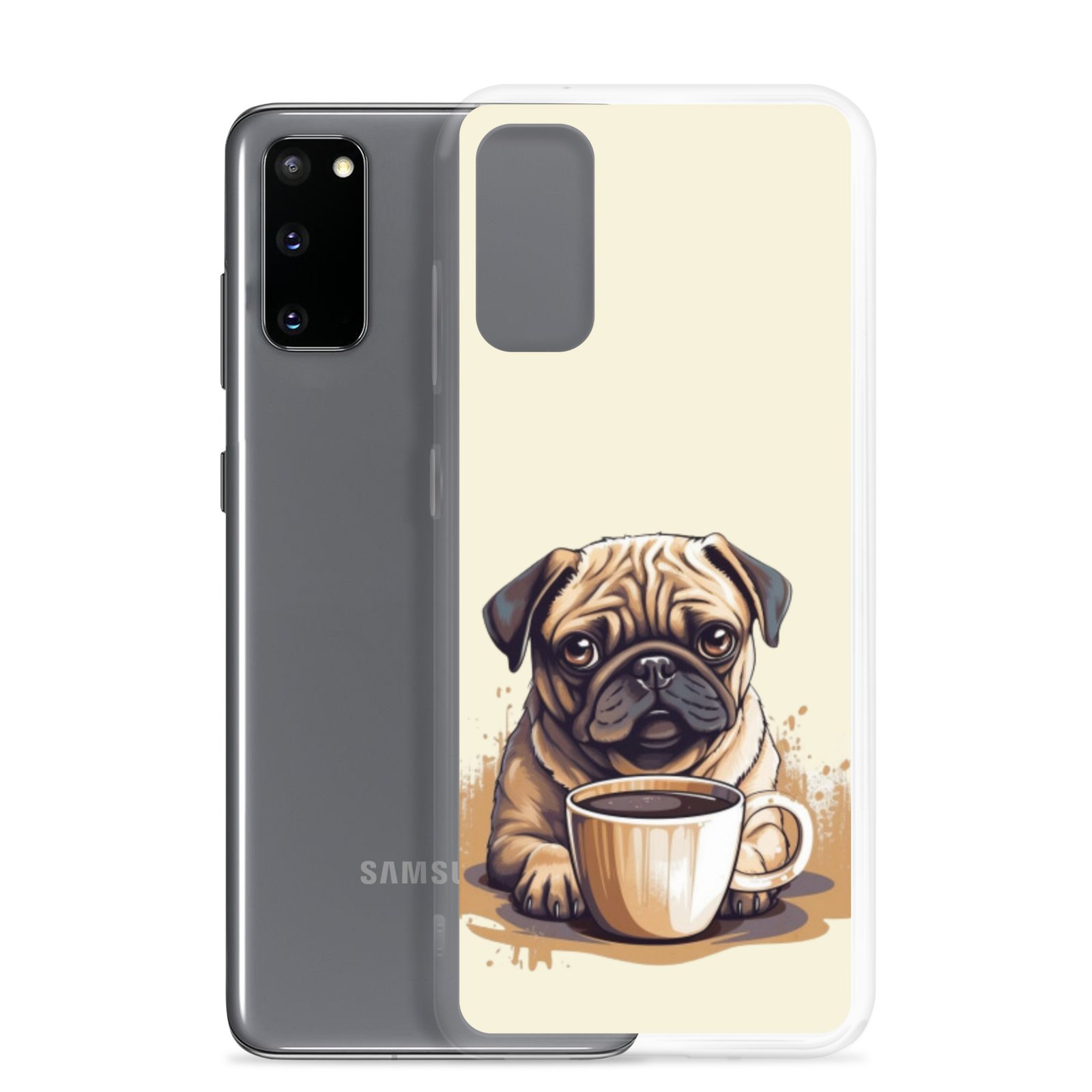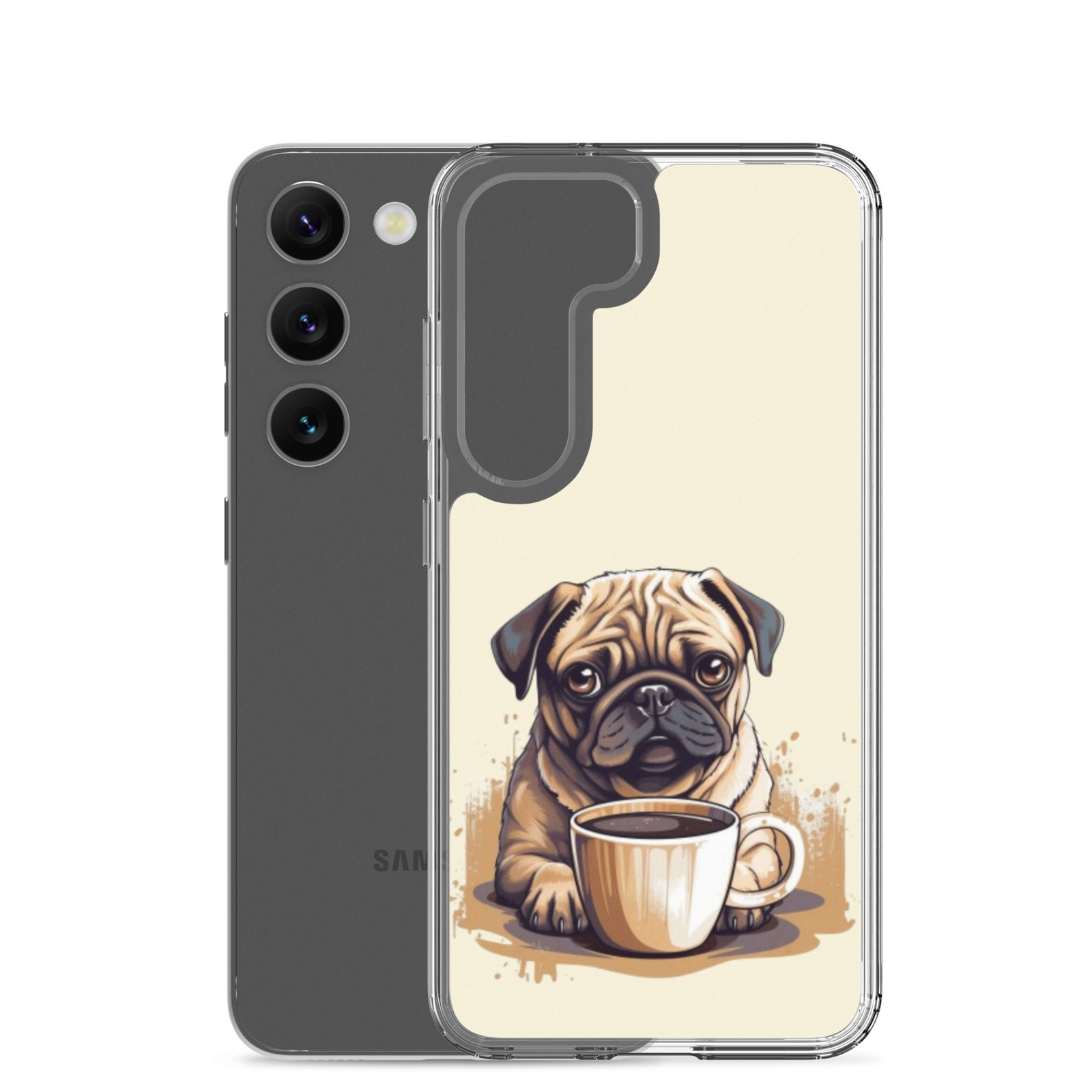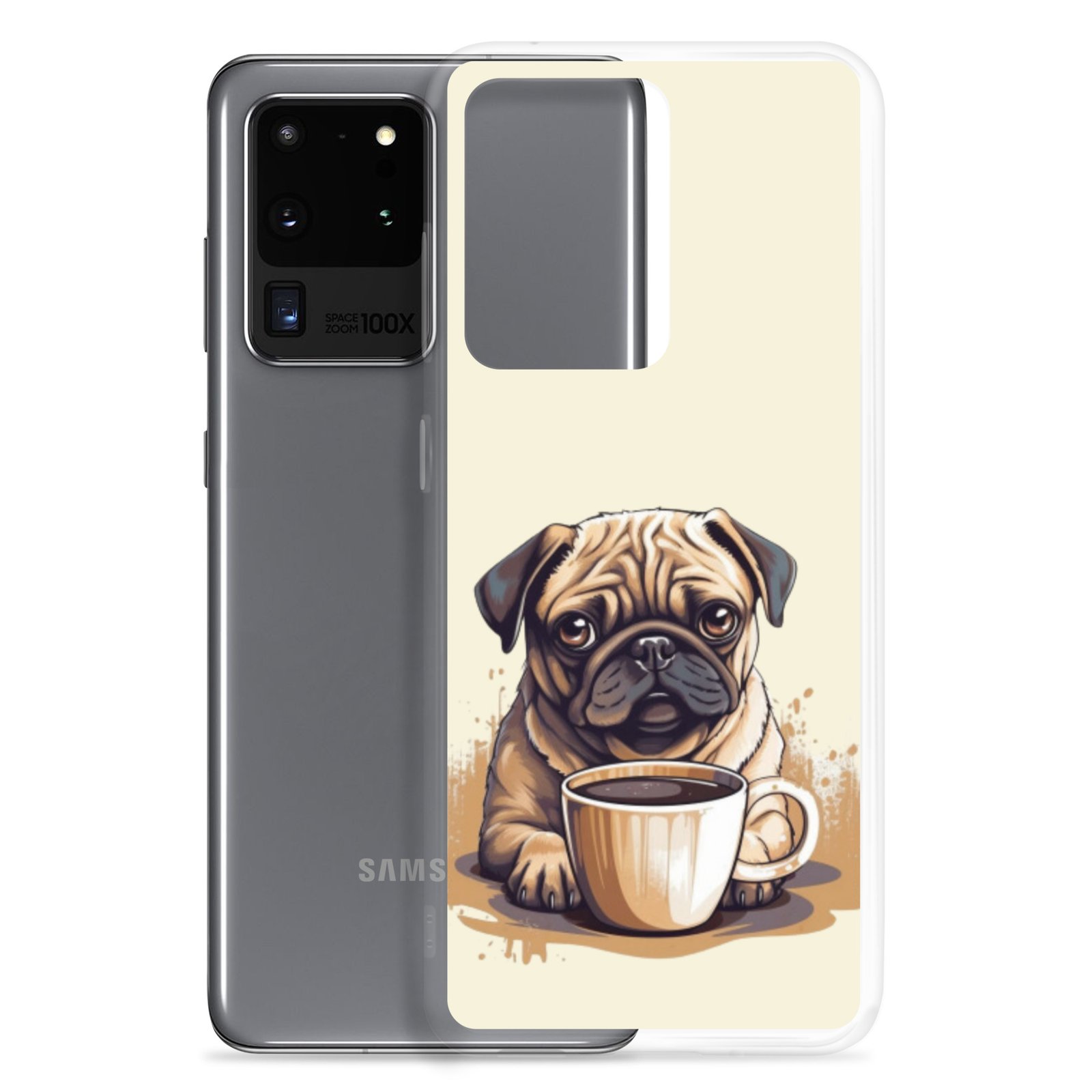 Pug Dog + Coffee – Clear Galaxy Case