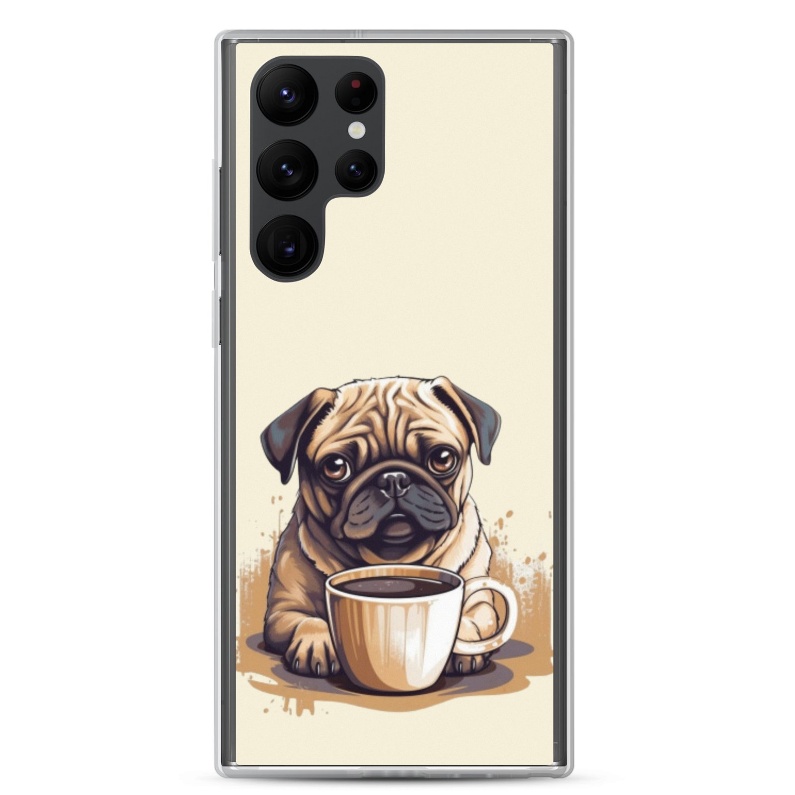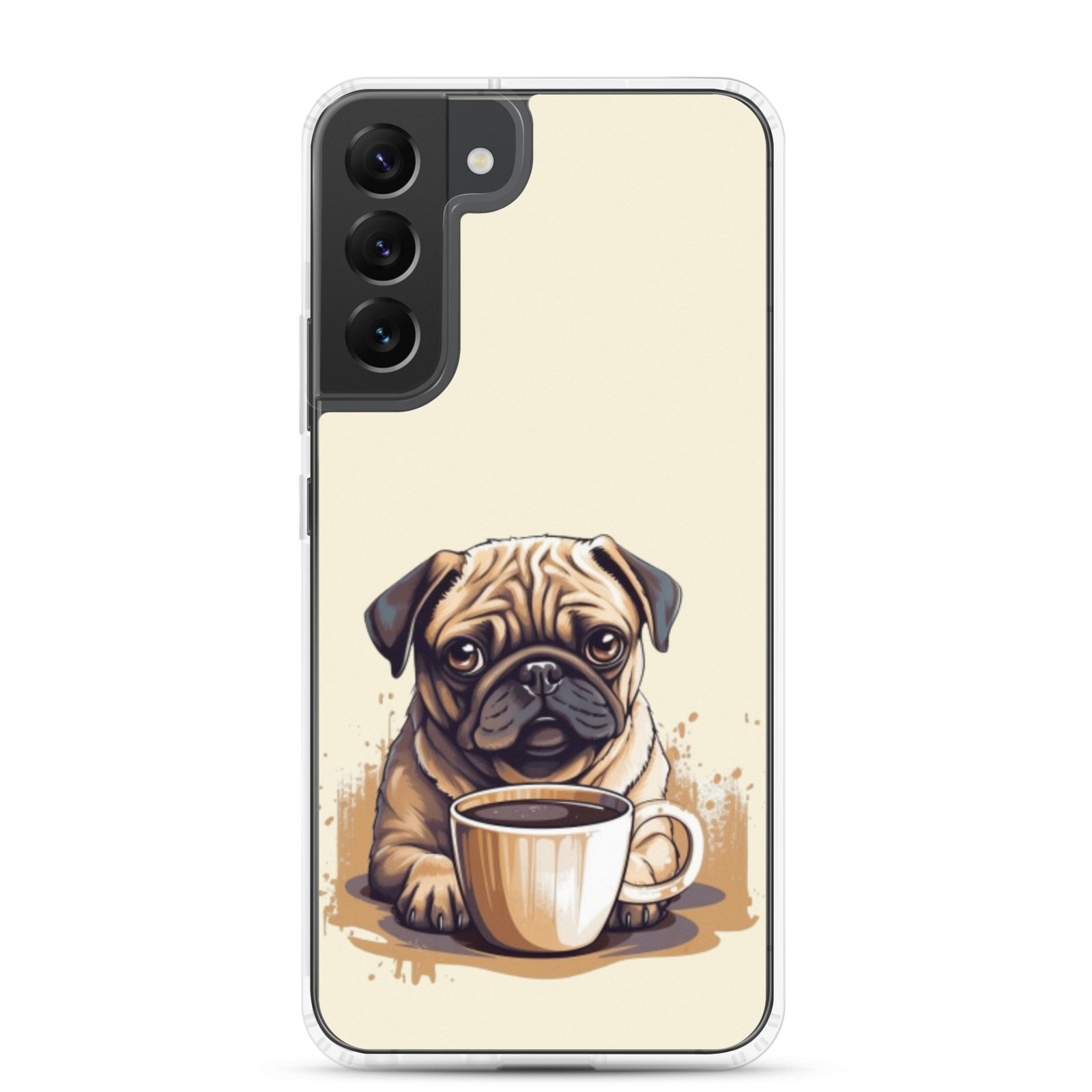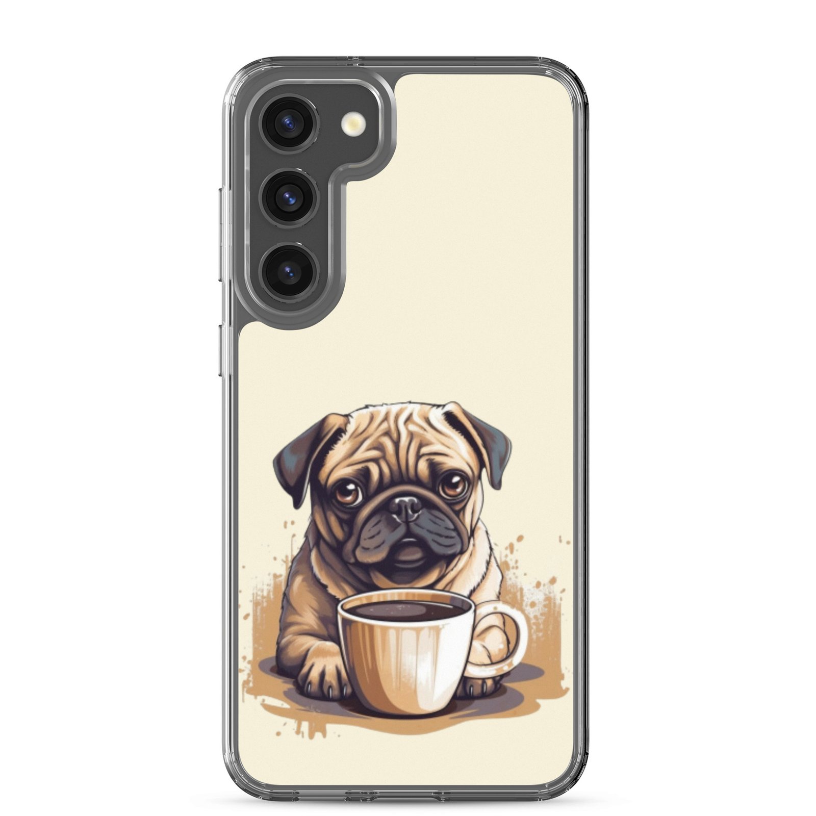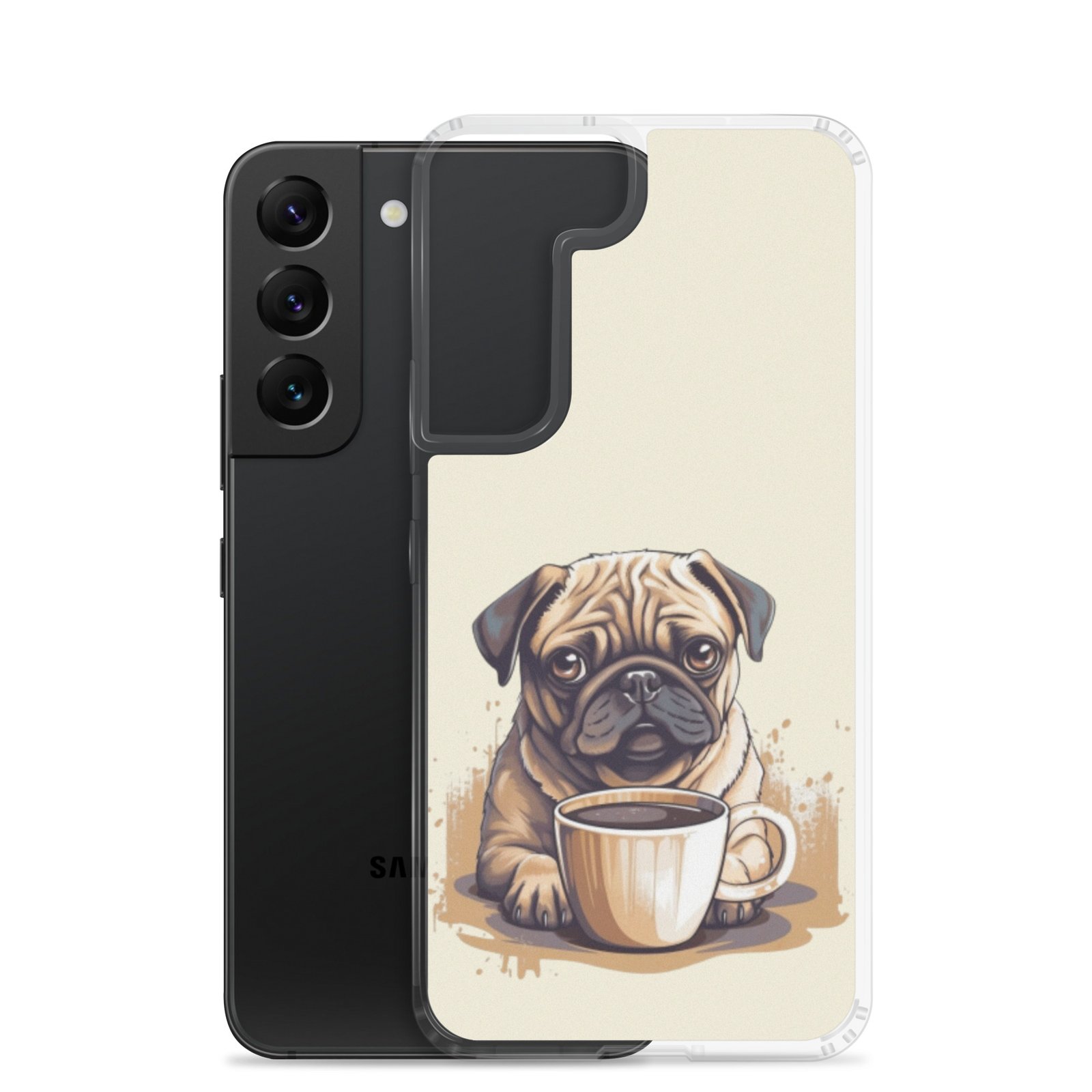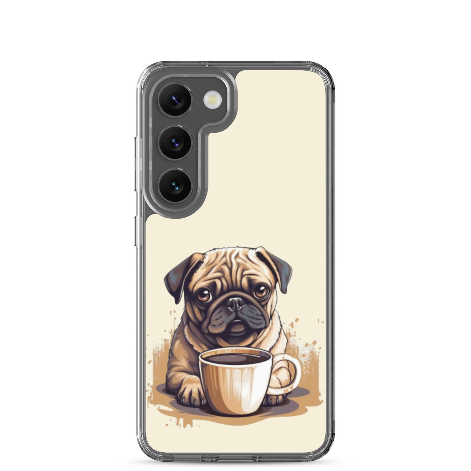 Pug Dog + Coffee – Clear Galaxy Case